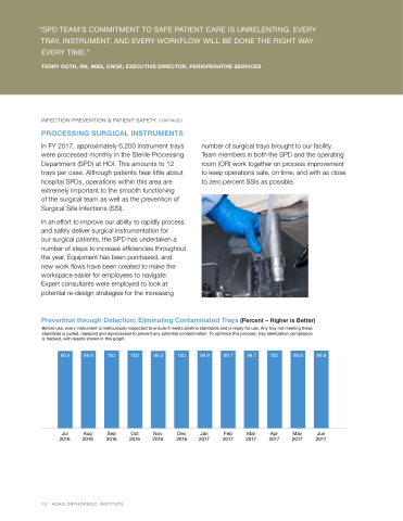 number of surgical trays brought to our facility. Team members in both the SPD and the operating room (OR) work together on process improvement to keep operations safe, on time, and with as close to zero percent SSIs as possible.