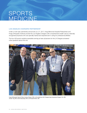 Hoag Orthopedic Institute provide the Los Angeles Chargers with comprehensive health care by nationally recognized physicians who are specially trained and experienced in caring for professional athletes.
