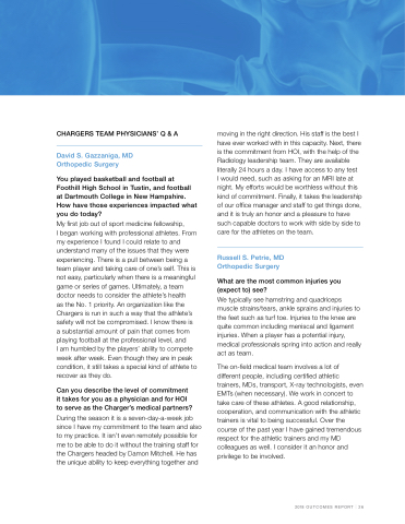 CHARGERS TEAM PHYSICIANS’ Q & A