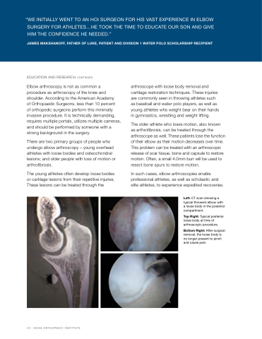 “WE INITIALLY WENT TO AN HOI SURGEON FOR HIS VAST EXPERIENCE IN ELBOW SURGERY FOR ATHLETES...HE TOOK THE TIME TO EDUCATE OUR SON AND GIVE HIM THE CONFIDENCE HE NEEDED.”