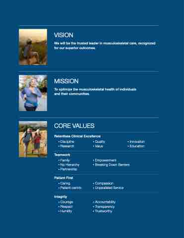 We will be the trusted leader in musculoskeletal care, recognized for our superior outcomes.