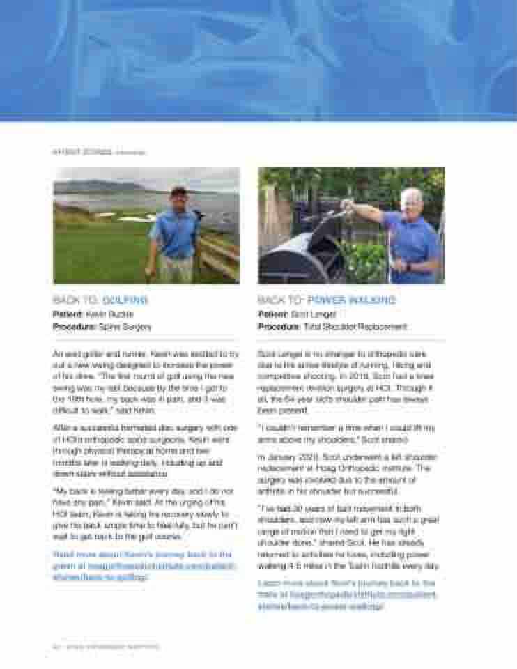 Read more about Kevin’s journey back to the green at hoagorthopedicinstitute.com/patient- stories/back-to-golfing/.